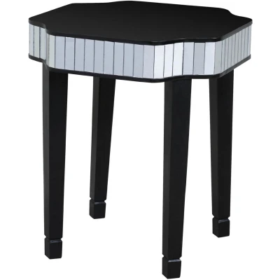 AmazonMade from solid wood and given a refined black finish that complements the glistening panel mirrors Four solid legs ensure the table is durable and stable Adequate surface space allows you to display plants, lamps, flowers, telephone and photos for a personal touch Care instructions: Wipe clean with a soft cloth Dimensions (height x width x depth): 60 x 51 x 51 cm