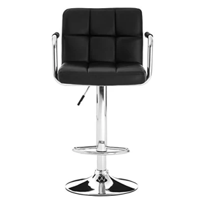 AmazonUpholstered in soft black faux leather Its quilted seat and backrest are enhanced by fine stitching, with a matching faux leather trim covering each chrome armrest Footrest projects from the reflective chrome stand, while an easy-to-reach handle below the seat allows for height adjustment Care Instructions: Wipe clean with a soft cloth. Do not use abrasive cleaners Dimensions (H x W x D): 111 x 45 x 50 cm