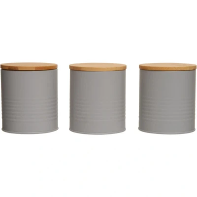 General description Elevate your kitchen organization with the Set of Three Grey Cannisters from Interiors By Premier. This stylish canister set includes three durable metal containers, each featuring a natural bamboo lid that adds a modern touch to any kitchen decor. Perfect for keeping your tea, coffee, and sugar fresh for longer, these canisters are not just functional but also an elegant addition to your kitchen counter. The sleek grey finish and minimalist design allow these canisters to blend seamlessly into various kitchen styles, from contemporary to rustic. Whether you need a biscuit canister set, sugar canister, or tea and coffee canisters, this versatile set caters to all your storage needs. Technical specifications Dimensions: H13 x L11 x W11 cm Weight: 0.80 kg Usage Wash the canisters before the first use. Avoid abrasive cleaners for long-lasting durability.