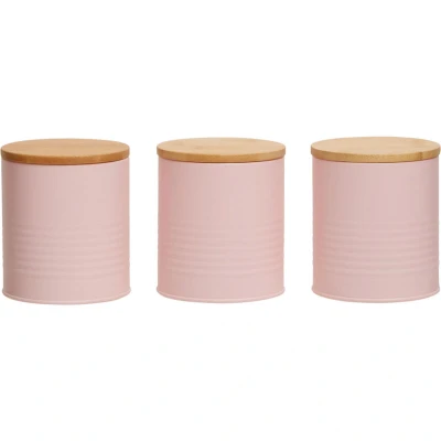 JoybuyThe Maison Alton Pink Cannisters are a set of three durable metal canisters with elegant pink finishes and natural bamboo lids, offering airtight storage for coffee, sugar, tea, or snacks. Their modern design enhances kitchen decor while ensuring functionality and freshness.