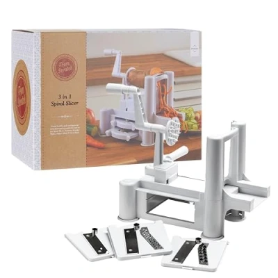 3 in 1 Spiral Slicer for Versatile Cooking: The Stainless Steel Spiral Slicer is a 3 in 1 tool that allows you to spiralize, slice, and shred a variety of vegetables with ease. Whether you're making zoodles, salads, or stir-fries. Durable & Lightweight Design: Made from high-quality stainless steel and a durable white ABS body, this spiralizer is built to last. Weighing just 1kg, it’s light enough to handle with ease yet sturdy enough to withstand regular use. Easy to Use: This vegetable slicer is designed with user-friendliness in mind. Its intuitive design makes it simple to operate. The sharp blades make slicing through vegetables effortless. Simply wash the slicer in warm soapy water Efficient & Time-Saving: Say goodbye to time-consuming meal prep. The Spiral Slicer is engineered for better efficiency, allowing you to prepare healthy, delicious meals in a fraction of the time. Compact & Convenient: With its compact size and lightweight construction, this spiralizer is easy to store and transport. The product dimensions of H22 x L15 x W30 cm make it perfect for small kitchens or on-the-go chefs., Manufacturer: Premier