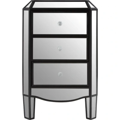 General description Elevate the elegance of your space with the 3 Drawer Mirrored Chest from Interiors By Premier. This contemporary chest combines timeless glamour with a modern twist, making it the perfect addition to any room in your home. Its sleek design showcases a stunning combination of mirrored surfaces and black trim, reflecting light beautifully to create a sense of space and sophistication. The three drawers are adorned with intricate cut glass handles, adding a touch of luxury and elegance to the piece. Not only is this chest designed to impress, but it also offers ample storage space, making it both practical and stylish. Whether you're storing clothes, accessories, or other essentials, the three wide drawers ensure everything is neatly organized. Technical specifications Height: 79 cm Length: 42 cm Width: 51 cm Weight: 21.50 kg Other information Designed with durability in mind, this sturdy chest is made to withstand everyday use. Whether placed in a bedroom, living