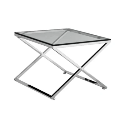AmazonCrisss cross design end table Stainless steel frame Clear tempered glass top Modern and stylish Height 49 cm x Width 65 cm x Depth 65 cm