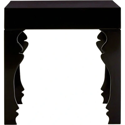 AmazonA magnificent feature in your living space, the side table, with its black high gloss finish, will bring a royal touch to your living room décor. The rectangular side table is made from durable MDF and features elegantly shaped legs, that further enhance its stately look while ensuring sturdiness and stability. This end table is ideal for displaying plants, lamps, flowers, photos and other decorative items, helping to personalise your living space. Care Instructions: Do not place on the unstable floor. Wipe with a damp cloth. Keep away sharp objects from it. Width 53 x Depth 53 x Height 53cm