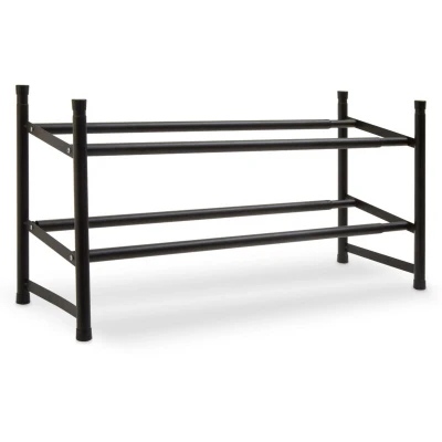 JoybuyThe Maison Two Tier Shoe Rack offers a sleek, matte black design that blends into any decor while providing sturdy, space-saving storage for multiple pairs of shoes. Ideal for home offices or entryways, its minimalist style keeps footwear organized and out of the way.