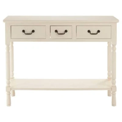 AmazonWhite console table has 3 storage drawers along with bottom shelf offering ample of space to store & protect multiple home items Console table for hallway, has Antique silver handles with carved spindle legs giving it a traditional design, is great addition in home decoration Console table is made of state of the art material makes it durable and long lasting for everyday usage Care Instructions: Wipe with a soft cloth, do not use abrasive cleaners. Dimensions: Width 81 cm x Depth 36 cm x Height 106 cm.