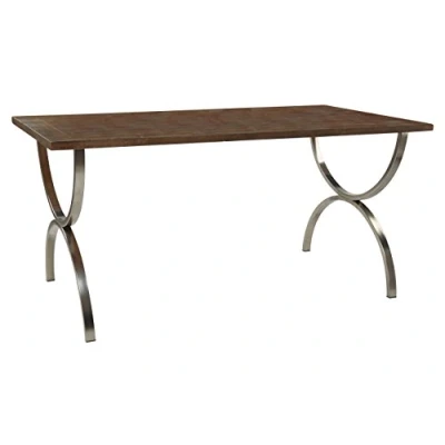 Interiors by Premier Rustic Wood Top Dining Table, Modern Rectangular Contemporary and Metal Table