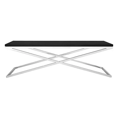General description This Interiors by Premier black coffee table is a stunning addition to any modern living space. It seamlessly blends contemporary design with everyday functionality, making it a perfect choice for the style-conscious homeowner. The eye-catching wood metal frame features a black, leather-effect top that offers a touch of luxury. The crisscross design of the polished stainless steel legs adds modern flair while ensuring exceptional stability. Built to last, this coffee table boasts a sturdy MDF top that can handle drinks, books, and décor with ease. Its sleek black finish and polished stainless steel create a visually striking centerpiece that elevates any living room. Technical specifications Material: MDF top with leather-effect finish Frame: Polished stainless steel Design: Rectangular with crisscross leg design