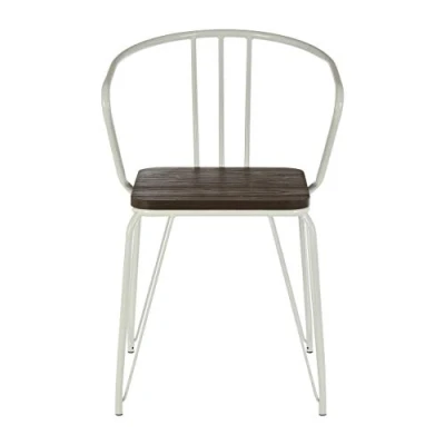 Interiors by Premier White Metal and Elm Wood Arm Chair, Accent Dining Versatile Wooden Chair for Home, Office, Lounge