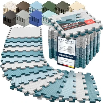 💪 𝗧𝗛𝗘 𝗧𝗘𝗦𝗧 𝗪𝗜𝗡𝗡𝗘𝗥*: 𝗧𝗛𝗘 #𝟭 𝗣𝗥𝗢𝗧𝗘𝗖𝗧𝗜𝗩𝗘 𝗠𝗔𝗧 𝗦𝗘𝗧 WITH 𝟭𝟴 𝗣𝗨𝗭𝗭𝗟𝗘 MATS FOR OPTIMAL FLOOR PROTECTION – Protect your floor from scratches, dents, sweat and noise with probably the best and safest protective mat set on the market! The light premium material is both sound and shock absorbent, waterproof and heat insulating. (*Comparison Winner (Category: Mat Underlays for Fitness Equipment) at Vergleich.org 12/21). 💪 𝗣𝗥𝗢𝗙𝗘𝗦𝗦𝗜𝗢𝗡𝗔𝗟 𝗤𝗨𝗔𝗟𝗜𝗧𝗬 𝗙𝗟𝗢𝗢𝗥 𝗣𝗥𝗢𝗧𝗘𝗖𝗧𝗜𝗢𝗡 – EXTRA LIGHT & SUPER STRONG – Thanks to the highly compressed EVA foam, our mats are extra light and yet still robust, perfectly suited as flooring for fitness and gymnastic studios, for sports equipment, playrooms, work spaces, garages, basements, pools, etc. WARNING: EVA mats may leave traces in parquet joints. 💪 𝗙𝗟𝗘𝗫𝗜𝗕𝗟𝗘, 𝗖𝗨𝗦𝗧𝗢𝗠𝗜𝗭𝗔𝗕𝗟𝗘 & 𝗜𝗗𝗘𝗔𝗟 𝗙𝗢𝗥 𝗔𝗟𝗟 𝗨𝗦𝗘𝗦 – The puzzle-form of these protective mats offers infinite expansion possibilities, making this premium floor-protection easily cut to size, laid or adapted to your needs. Freely combine our large and small mats. 18 Mats measuring: 11.8 in x 11.8 in x 0.4 in + Edge pieces | Total Area: app. 6 ft x 3 ft = 18 sq ft. || 30 cm x 30 cm x 1 cm + Edge pieces | Total Area: app. 182 cm x 92 cm = 1.67 m² 💪 𝗟𝗔𝗕-𝗧𝗘𝗦𝗧𝗘𝗗 𝗣𝗥𝗘𝗠𝗜𝗨𝗠 𝗤𝗨𝗔𝗟𝗜𝗧𝗬 – Our bemaxx promise: Your health is important to us: all our mats are laboratory-tested and are therefore also ideal for use in your own four walls, e.g. for home fitness etc. 💪 𝗣𝗥𝗘𝗠𝗜𝗨𝗠 𝟮𝟰/𝟳 𝗦𝗨𝗣𝗣𝗢𝗥𝗧: 𝗪𝗘 𝗔𝗥𝗘 𝗔𝗟𝗪𝗔𝗬𝗦 𝗧𝗛𝗘𝗥𝗘 𝗙𝗢𝗥 𝗬𝗢𝗨 - Order today and see for yourself. If you are not completely satisfied, just contact our 24/7 support team and we will help you in any way we can.