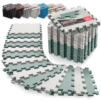 Interlocking Soft Foam Floor Mat 18 Pieces Protective Gym Flooring Set, Exercise Mats EVA Puzzle Rubber Tiles, Ground Surface Protection Workout Underlay Matting Sports Pool Home Fitness Garage