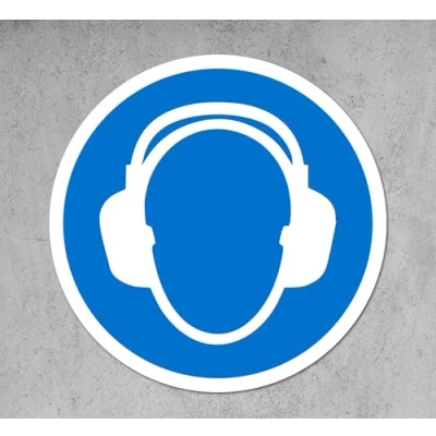 International ISO Ear Protection Required Symbol Safety sign Self adhesive sticker 100mm Diameter (PACK OF 5 STICKERS) Remove backing film and apply to dry, smooth, oil free surface. Digitally printed and laminated for extra durabillity