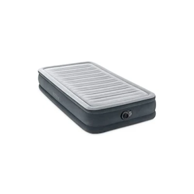 Intex Dura-Beam Deluxe Comfort-Plush Mid-Rise Single Airbed LARGE CAPACITY - Measures 39" x 75" x 13", holds up to 300 lbs in weight QUALITY AND DURABILITY - Made with PVC, interior construction with thousands of fine polyester fibers for firmness, comfort and stability Inflation and deflation type: with built-in electric pump, easy to inflate and deflate in about 2 minutes MUST-HAVE ACCESSORIES - Edge at base for optimal stability, includes carry bag and repair patch