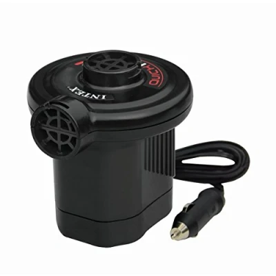 An electric pump For inflating and deflating Including adapters and separate adapters Suitable for a 12 Volt (car)connection 600 liters per minute