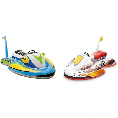 Intex ride-on float 117x77 cm, made of multicolored vinyl, ideal for children over 3 years old. Sturdy and durable, it features a handle for added safety and a wide base for better stability. Weight limit: 40 kg. Includes a repair patch.