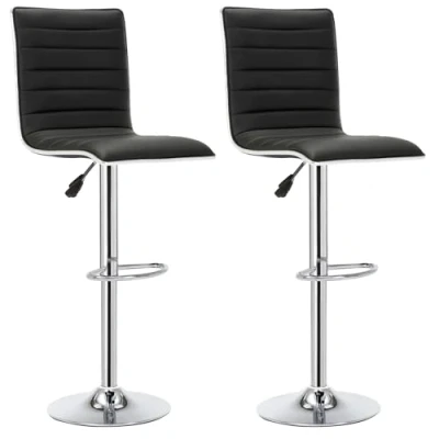 MODERN STYLE - Made with high-quality faux leather and padded with thickened&comfortable sponge; the designed metal frame with elegant modern style can prevent the margin area from wearable efficiently, improving its service time. HEIGHT ADJUSTABLE & SWIVEL - The overall chair height is 96-117cm with seat height range of 61-82cm; equipped with foot pedal and 360 degree swivel; the high backrest of 35cm can provide you with the most comfortable and soft sitting experience. SAFETY & STABILITY - The gas lift has been tested by international SGS; the chromed base of jumbo size in diameter and mental frame can improve the chair’s safety and stability greatly; the maximum bearing weight is 120kg. EASY TO CLEAN - The wearable high-quality faux leather is easy to clean, and only use a wet cloth can wipe away stains. EASY TO ASSEMBLE - Packaged with a set of two stools, instruction and well-equipped installation kit; Easy to assemble, only one person can fix it.
