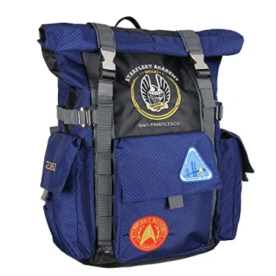 THIS IS AN STAR TREK BACKPACK - These backpacks are covered with nice embroidered logos and patches representing the Starfleet Academy over the years. These intricate designs take inspiration from Star Trek lore, symbolizing various elements of the Starfleet Academy. Each embroidery adds a touch of luxury and enhances the bag's visual appeal, truly making it a standout piece. MULTIPLE COMPARTMENTS INCLUDING PADDED LAPTOP POCKET - This Star Trek bag has 3 outer pockets with hook and loop closures. The main compartment can be accessed from the roll-top opening or a back zipper. A padded laptop compartment inside will keep your precious electronic devices safe from harm. SUPER DURABLE FABRIC AND BUILD THAT WILL LAST THE TEST OF TIME - The backpack is designed to endure the rigors of daily use, space explorations, or your next adventure on Earth. Its roll-top closure adds a stylish twist to the design and provides an extra layer of security to your belongings, keeping them safe from the elements. MEASUREMENTS - This backpack measures approx 18" x 5" x 13". When you open the roll top you get about another 4 inches in on the top. STAR TREK GIFT FOR ANY FAN - for Star Trek fans, sci-fi lovers, or anyone seeking a long-lasting and stylish backpack, this accessory truly lets you carry a piece of the Starfleet Academy with you wherever you go. Manufacturer recommended age: 3 years and older.