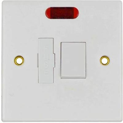 Invero 1 Gang Spur Wall Switch 13 Amp Fused Connection Unit Switched Standard Square White with Red Neon Indicator