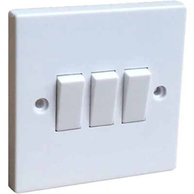Versatile 3 Gang 2 Way Switch: Perfect for controlling multiple lights, this standard square switch is a must-have for any home. Easy to install with fixing screws included, it's designed to blend seamlessly with any decor, offering both style and functionality. Rated 10 Amp, 220-250V. Sleek White Rocker Switch: Enhance your lighting control with this clean and modern white plastic switch. It’s compliant with British and European standards, ensuring safe and reliable operation. Whether for your home, shed, or office, this switch offers durability and ease of use. Easy Installation: No need to worry about complicated setups. This 3 gang 2 way light switch comes with all the necessary fixing screws for a quick and hassle-free installation. Perfect for DIY enthusiasts and professionals alike, it’s ideal for various lighting setups. Safe & Reliable: Designed to meet the latest British and European standards, this 10 Amp light switch ensures safe operation in any environment. Whether it's for a residential, commercial, or office setting, it provides a dependable solution for all your lighting needs. Ideal for Any Space: From homes to offices, this versatile 3 gang 2 way switch fits perfectly in any room. Its white plastic finish complements any interior design, making it a great choice for both new builds and renovations. Durable, stylish, and easy to use!