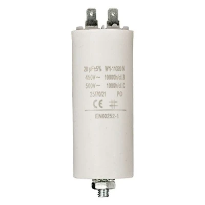 Invero Cylinder Shaped Run Motor Pump Capacitor 20.0uf 450V Earthed Dimensions: 40 x 95 mm White