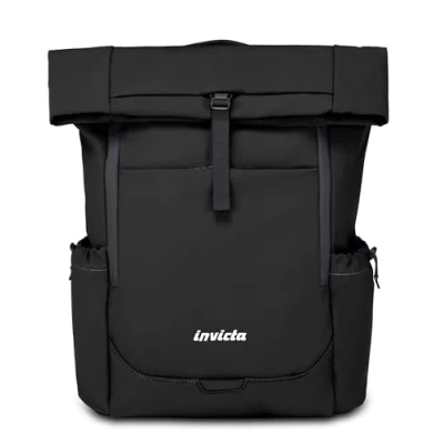 Invicta Act Fold Work Backpack, Black, Single Compartment with 15.6 Inch PC Pocket, Water Bottle Pocket and Reinforced Base, Large 32 L Backpack for Office University, Men Women