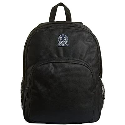 Dimensions: 30 x 40 x 22 cm; capacity: 28 litres Features: double compartment, personalised zip, reflective patch with embroidered trademark, Invicta silicone flag label on shoulder strap Pockets: inner pocket with organiser, padded inner pocket for notebook, front pocket, side mesh pockets Shoulder straps: padded and covered with fabric. Breathable mesh undershoulder strap Backrest: padded and covered with fabric
