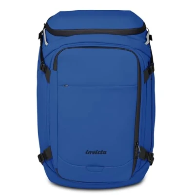 Dimensions: 34 x 53 x 25 cm. Capacity: 43.5 litres. Backrest: Fabric covered and padded. Pre-shaped inserts in the support points to ensure maximum comfort. Tape for trolley rod housing. Straps: pre-shaped and covered with fabric. Under mesh shoulder strap, removable adjustable chest strap, fully concealed in the backrest, reflective inserts. Pockets: Separate and padded back compartment for laptops up to 15.6" (up to 26x38x2cm). Ideal internal organization for clothing and accessories, zipped pocket. Exterior top and side multi-purpose pocket, side bottle pocket, front zip pocket. Other features: Single-compartment backpack with reinforced bottom. Designed to be a carry-on luggage that complies with the rules of most airlines. High definition label, top and side carry handle, side straps volume adjustment, adjustable waist strap fully concealed in the backrest, reflective inserts. Water repellent finish zipper, metal zip puller Embroidered Invicta logo Fabric: Main fabric: 86% nylon + 14% spandex; The Invicta Campus M Backpack is the perfect choice for those looking for versatile and practical cabin luggage, suitable for travel, work and leisure. Thanks to its 43.5 litre capacity, it offers enough space for clothing and accessories, while remaining in line with the size of cabin luggage required by most airlines. Thanks to the padded back, ergonomic shoulder straps and adjustable chest strap, comfort is guaranteed even on long journeys. In addition,