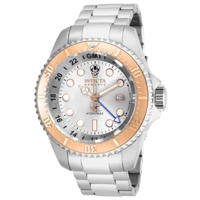 The Invicta 16964 has a 52 millimetres stainless steel case with a silver dial. This model is powered by an accurate Quartz movement. 100 bar water pressure resistant. This model is part of the Invicta Hydromax collection. Including 2-year Invicta warranty.