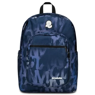 Dimensions: 32 x 43 x 25 cm. Capacity: 38 litres Back: Padded and covered in fabric. Shoulder straps: Padded and covered in fabric with under mesh shoulder straps Pockets: Internal pocket with organizer, internal compartment for PC and side pockets for water bottle. Other features: Double compartment backpack with reinforced bottom, zip puller with drawstring and patch Invicta. Fabric: 100% recycled polyester, GRS certified