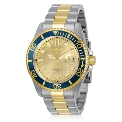 The Invicta 30022 has a 43 millimetres stainless steel case with a gold dial. This model is powered by an accurate Quartz movement. 10 bar water pressure resistant. This model is part of the Invicta Pro Diver collection. Including 2-year Invicta warranty.