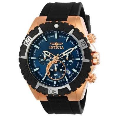 The Invicta 22524 has a 49 millimetres stainless steel case with a blue dial. This model is powered by an accurate Quartz movement. 10 bar water pressure resistant. This model is part of the Invicta Aviator collection. Including 2-year Invicta warranty.