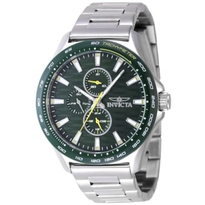 The Invicta 47549 has a 44 millimetres stainless steel case with a Green dial. This model is powered by an accurate Quartz movement. 5 bar water pressure resistant. This model is part of the Invicta Racing collection. Including 2-year Invicta warranty.