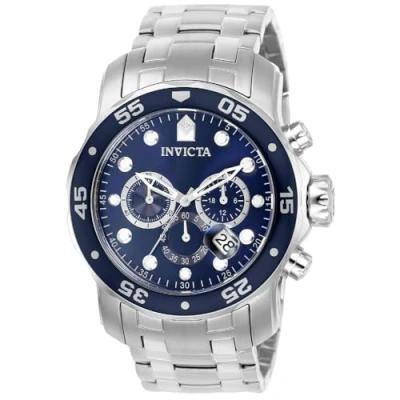 The Invicta 0070 has a 48 millimetres stainless steel case with a blue dial. This model is powered by an accurate Quartz movement. 20 bar water pressure resistant. This model is part of the Invicta Pro Diver - SCUBA collection. Including 2-year Invicta warranty.