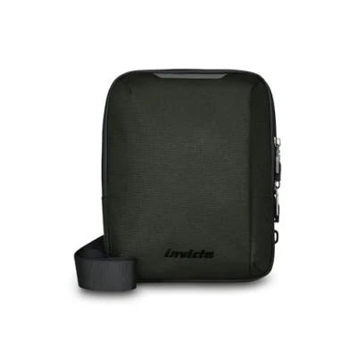Dimensions: 22 x 28 x 8 cm Pockets: iPad compartment. Smartphone pocket. External front pocket with zip. Shoulder bag or crossbody bag. Organized internally with anti-scratch fabric lined pockets and padded. Custom metal pull pull. Adjustable shoulder strap Key ring hook. Reflective inserts and Invicta logo. Water repellent finish zip Fabric: 100% recycled polyester, GRS certified