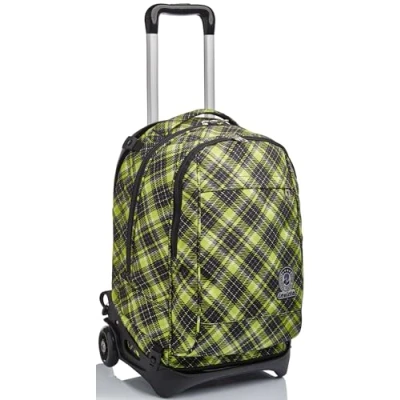Invicta Rolling backpack, NEW Tech TARTAN Wheeled Book Bag, 3 in 1, Detachable Backpack + Trolley, For Teen, Girls&Boys, School, Sport, Free Time, Laptop Sleeve, Italian Design, green