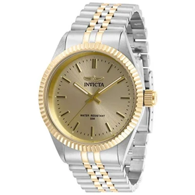 The Invicta 29382 has a 43 millimetres stainless steel case with a gold dial. This model is powered by an accurate Quartz movement. 5 bar water pressure resistant. This model is part of the Invicta Specialty collection. Including 2-year Invicta warranty.