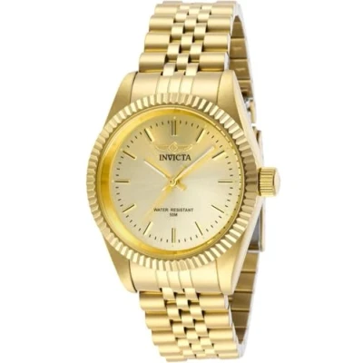 The Invicta 29411 has a 36 millimetres stainless steel case with a gold dial. This model is powered by an accurate Quartz movement. 5 bar water pressure resistant. This model is part of the Invicta Specialty collection. Including 2-year Invicta warranty.