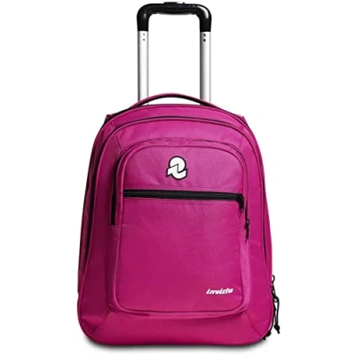 Dimensions: 38 x 51 x 24 cm. Capacity: 42 litres Shoulder straps: padded and covered with fabric Pockets: front pocket, organizer pocket, interior laptop pocket, side pockets for water bottle. Features: full opening "travel use" 75mm wheels, fully retractable shoulder straps in the backrest, double adjustable telescopic pole, shock-resistant base with tilt base, zip with drawstring, Invicta patch, Invicta patch, Invicta logo screen printed logo, pennant. High definition Merina on the side, crossover system, double compartment Fabric: 100% recycled polyester (Rpet), "grs" certified