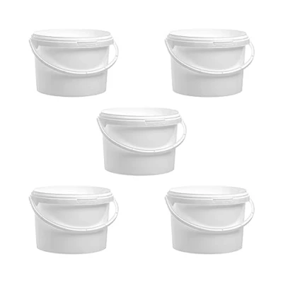 Invopak 5 x 3 Litre Food Grade Plastic Buckets with Lid and Handle White, Airtight, Recyclable & BPA Free