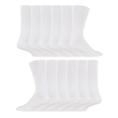 IOMI 12 Pair Multipack Gentle Grip Top Diabetic Socks Mid Calf Loose Non Elastic Cotton with Handlinked Seamless Toe (6 11, White)