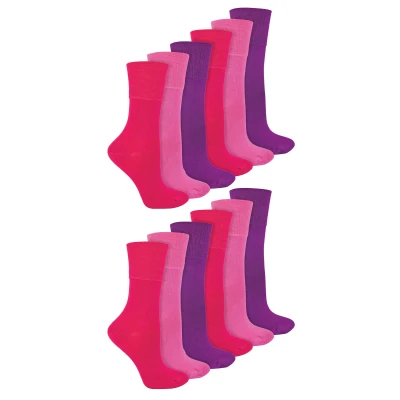 IOMI 12 Pair Multipack Ladies Diabetic Bamboo Socks Womens Extra Wide Seamless with Non Elastic Gentle Grip Top (4 8, Pink)