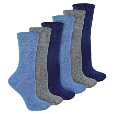 IOMI 6 Pack Ladies Diabetic Bamboo Socks Extra Wide Seamless Loose Non Elastic for Women (4 8, Blue)