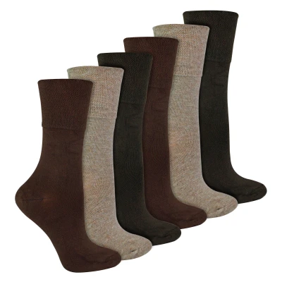 IOMI 6 Pack Ladies Diabetic Bamboo Socks Extra Wide Seamless Loose Non Elastic for Women (4 8, Dark Brown)