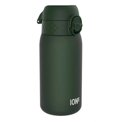 Ion8 Kids Water Bottle, 350 ml/12 oz, Leak Proof, Easy to Open, Secure Lock, Dishwasher Safe, BPA Free, Carry Handle, Hygienic Flip Cover, Clean, Odour Carbon Neutral, Dark Green