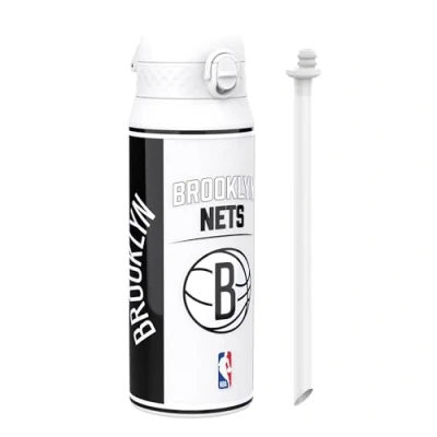 Ion8 NBA Brooklyn Nets Sports Thermal Water Bottle with Removable Straw, 750ml/24oz, Leak proof Insulated Drinking Bottle, Easy to Open, Secure Lock, Dishwasher Safe, Flip Cover, Metal