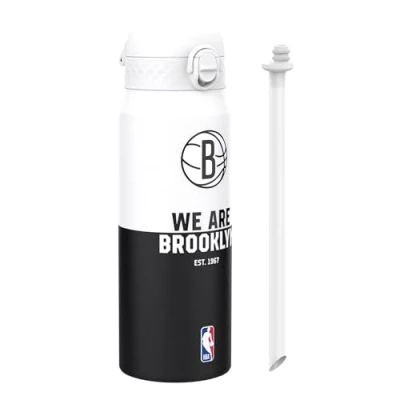 Ion8 NBA Brooklyn Nets Sports Thermal Water Bottle with Removable Straw, 750ml/24oz, Leak proof Insulated Drinking Bottle, Easy to Open, Secure Lock, Dishwasher Safe, Flip Cover, Metal