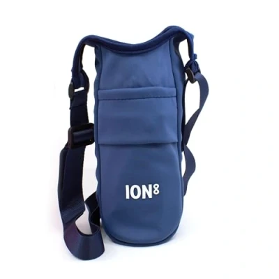 Ion8 Sling Bag Foldable, Lightweight Water Bottle Holder & Carrier with Pocket, Adjustable Strap Hook Machine Washable, Fits 1L Travel Friendly Easy to Clean Hydration Pouch, Navy