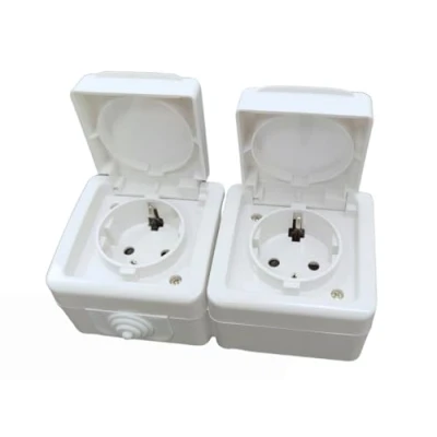 IP54 16A 250V White Double Base outdoor Ideal for installations, waterproof and dustproof, perfect ensuring safe durable electrical connections.