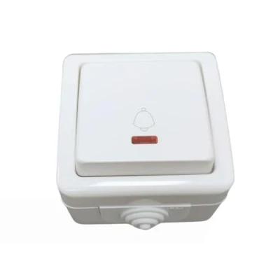 IP54 Outdoor Push Button with Indicator Light, 10A 250V, White. Ideal for and humid Applications.