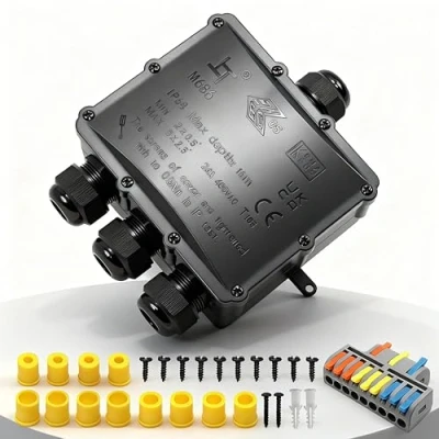 IP68 WATERPROOF & DUST-PROOF__ Waterproof M25 cable gland connectors at both ends and waterproof rubber rings are designed to protect from water. The professional waterproof grade can up to IP68, certificated by CE, TÜV, CUL, ENEC and ROHS. Max depth can up to 10m. WATERPROOF RUBBER RINGS__ Equipped with 3 sets of different sizes waterproof sealed rubber rings, fit for all kinds of wires. Support cables of 4-14 mm, you can change by yourselves to suitable for different wires to prevent water entering. With waterproof sealing rubber circle and sealing screw to completely sealed. SUPERIOR QUALITY BOX__ Premium quality waterproof flame retardant PC material which is fireproof, dust-proof and anti-impact, it’s durable and not easy to breaking. Acid & alkali resistant and UV protection, perfect for outdoor use, indoors and underground. Rated voltage is 450V and rated current is 24A. EASY TO INSTALL__ Junction box can be easily installed under the ground, gives you full protection of the Cable Line. Equipped with 10 screws and 3-IN/ 9-OUT quick connector terminal for easily install. 4-way junction box is your best choice for outdoor lamps and lanterns connection. WIDELY USED__ Suitable for electrical installations, outdoor cabling and cable repairs or extends. It can be installed in outdoors and indoors, such as wall, garden, yard, path, patio, road, street, swimming pool, pond, balcony, house, also widely applications in underwater engineering, underground engineering, and various industrial area.